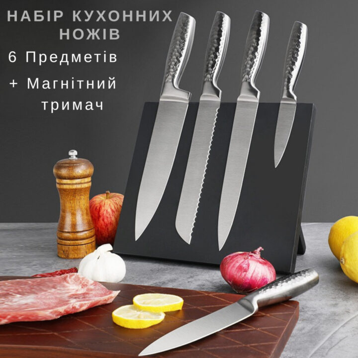 Набір кухонних ножів 5шт з підставкою та дошкою “SharpLine 7”