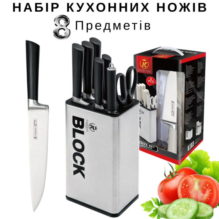 Набір кухонних ножів King BLOCK – 8 предметів, з точилом і ножицями
