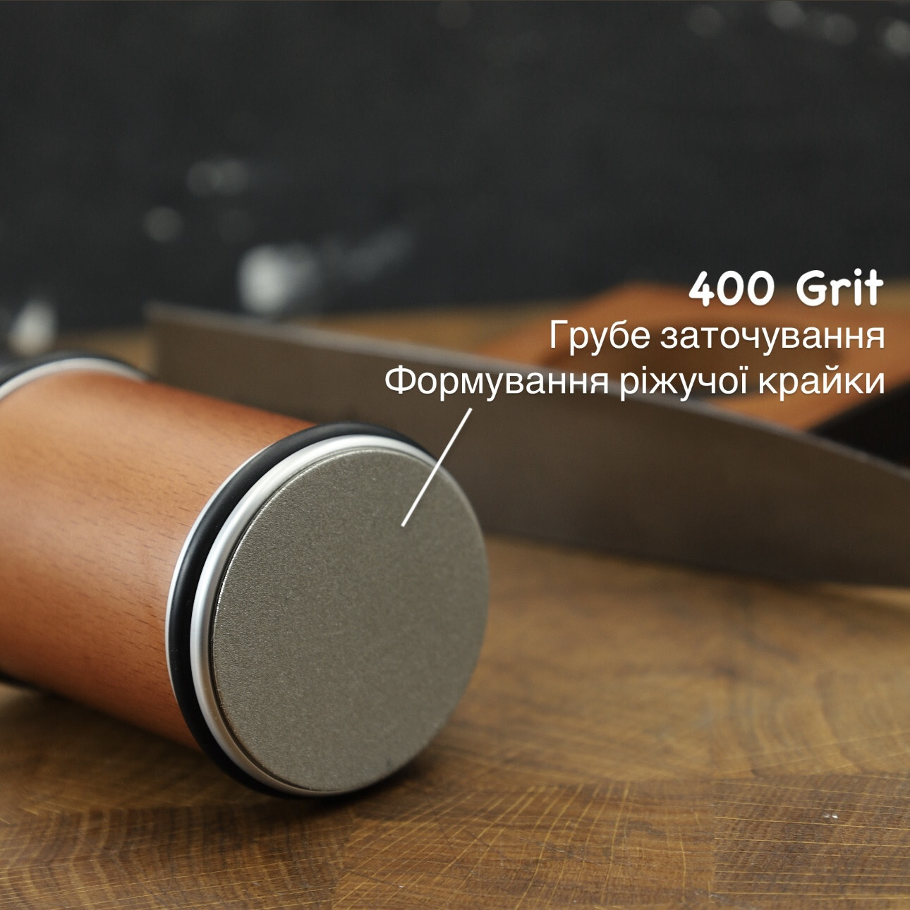 Робочі АЛМАЗНІ поверхні точила мають високу твердість і зносостійкість, що забезпечує довгий термін служби інструменту та якість заточування. Роликова Точилка для ножів дозволяє швидко відновити працездатність ножів, не затримуючи процес приготування. Окрім основної циліндричної частини, набір включає спеціальну підставку-упор, яка дозволяє правильно встановити лезо під необхідним кутом. Нижня частина підставки має протиковзку поверхню, що забезпечує зручність і безпеку під час роботи з ножами. Ця ручна точилка підходить не лише для кухонних ножів, а й для широкого спектра інших лез. Вона ефективно заточує ножі для м’яса, риби, овочів, а також інструменти для обробки матеріалів і тканин.