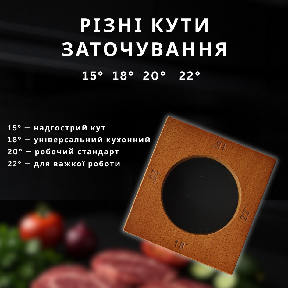 Механічна роликова точилка для ножів з упором на 15,18,20,22 градусів гарантує ефективне заточування лез, відновлюючи їхню гостроту всього за кілька хвилин!