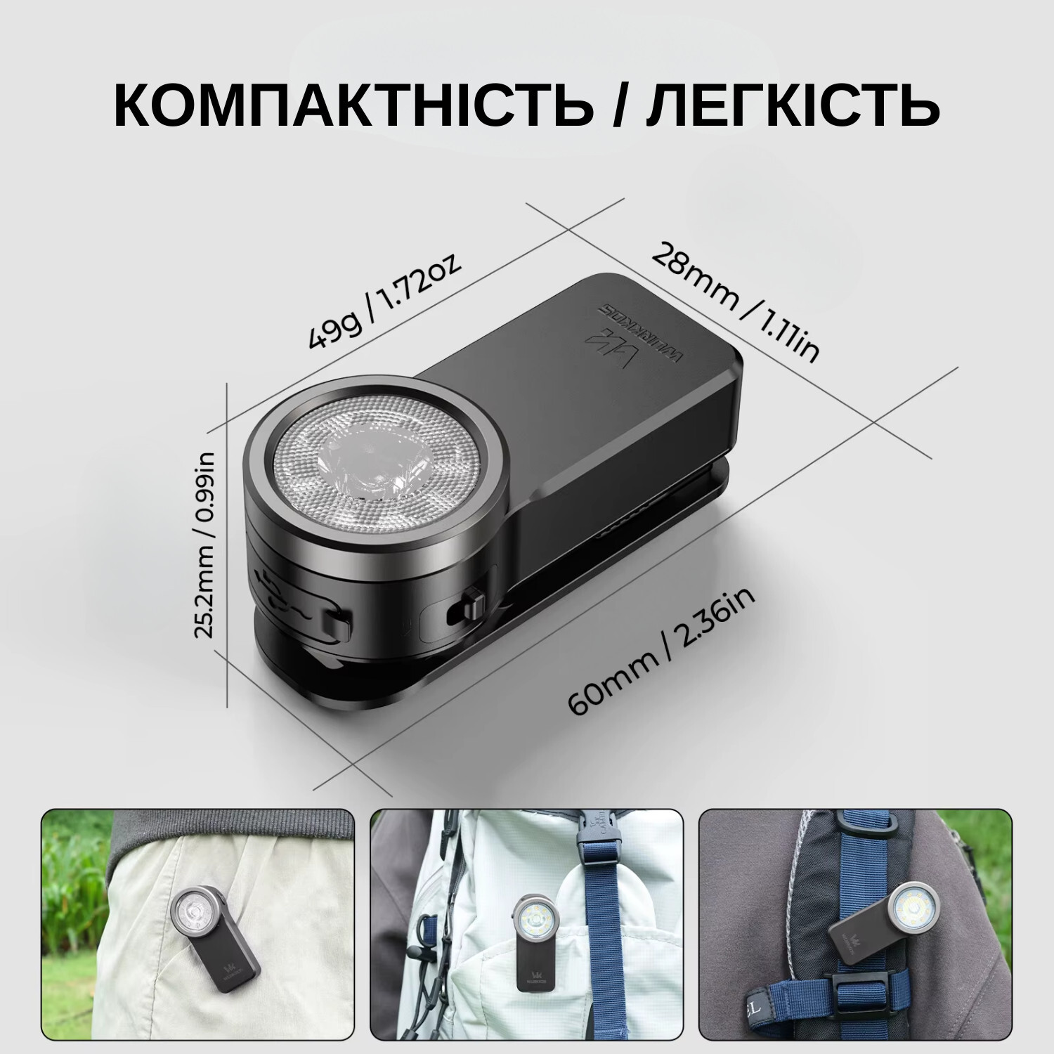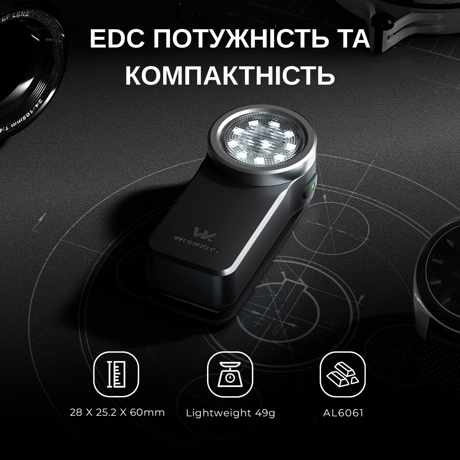 Компактний та легкий — кишеньковий форм‑фактор (EDC), невеликий, з магнітним кліпом для кріплення на одязі або металевих поверхнях