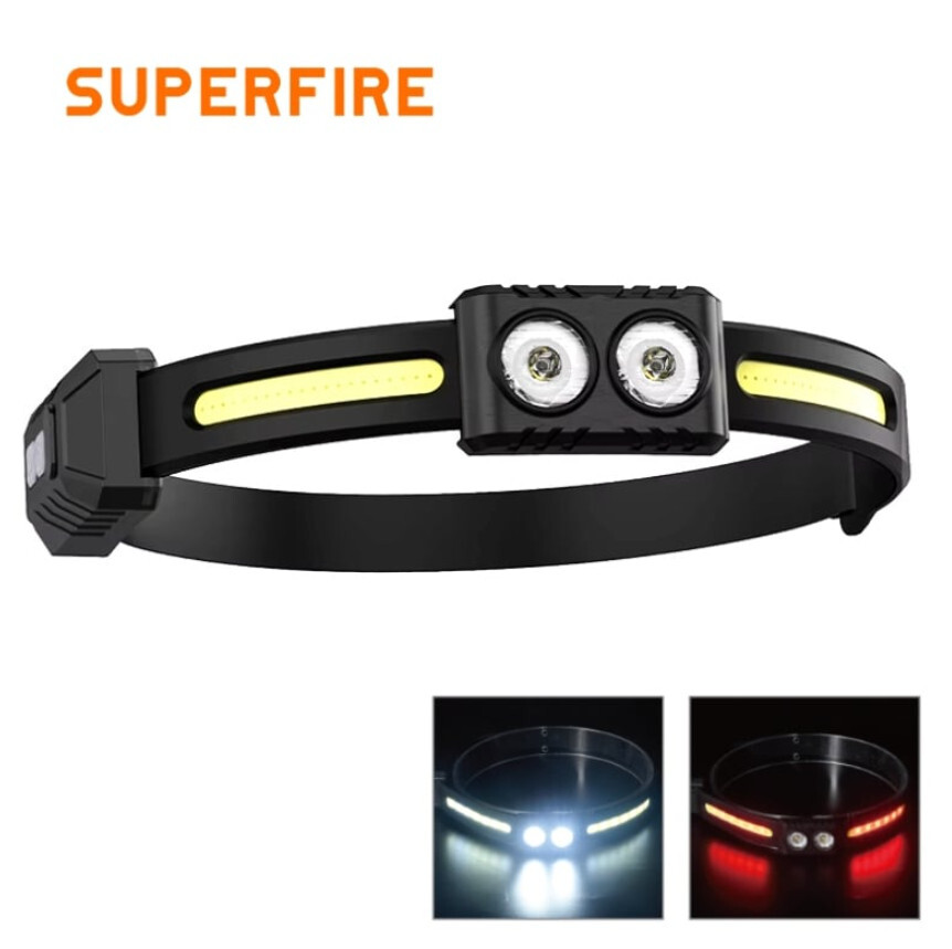 Ліхтарик налобний із двома джерелами світла (LED + COB) SuperFire HE03