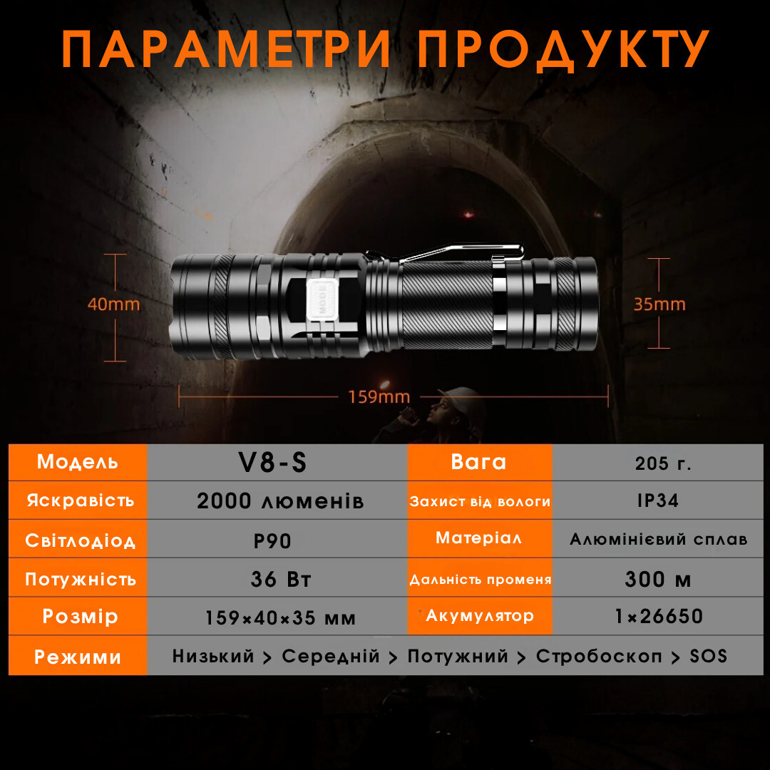 • Тактичні режими Strobe/SOS для екстрених ситуацій