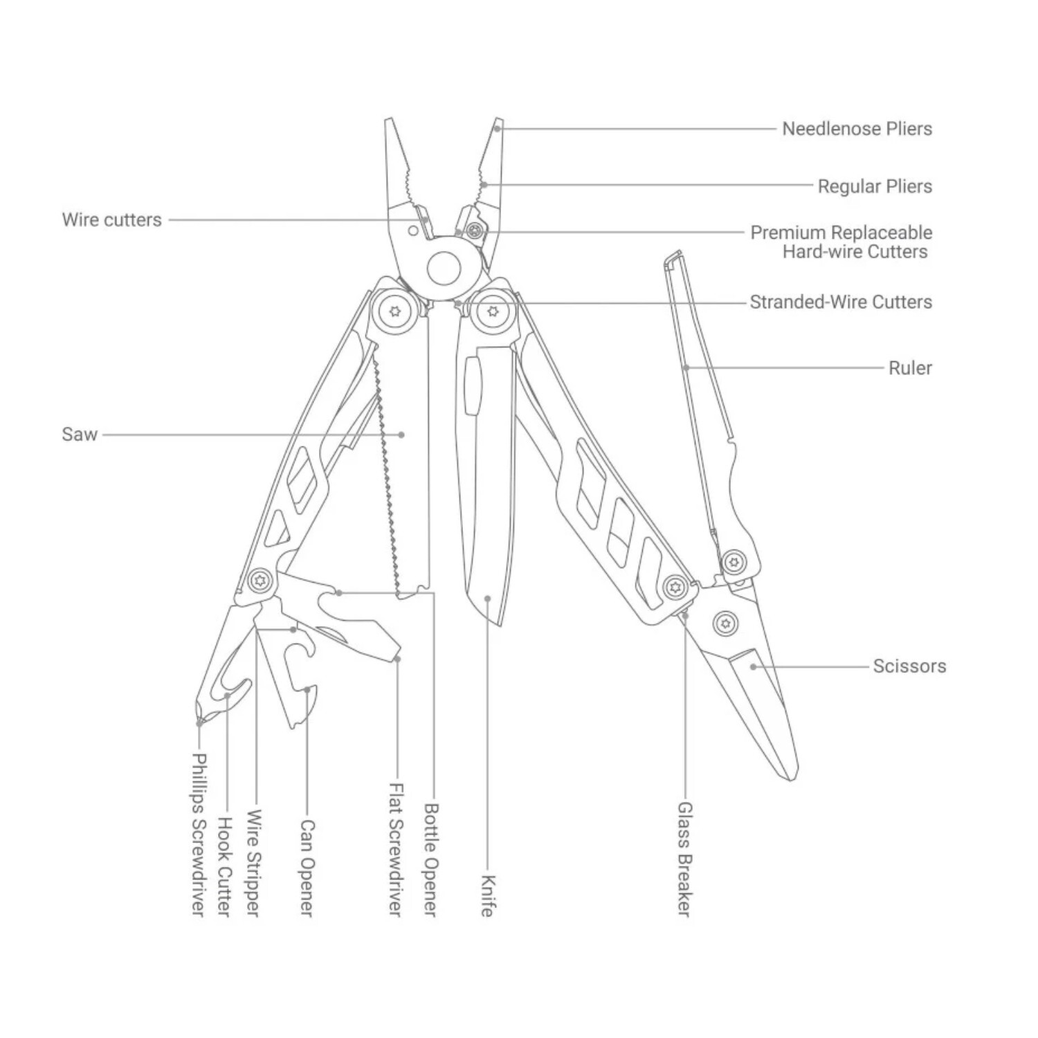Цей універсальний мультитул стане незамінним помічником для тих, хто цінує практичність і готовність до будь-яких викликів. Виготовлений із високоякісних матеріалів, він поєднує 16 ретельно продуманих інструментів, які допоможуть вам у повсякденних ситуаціях, ремонті чи активному відпочинку.