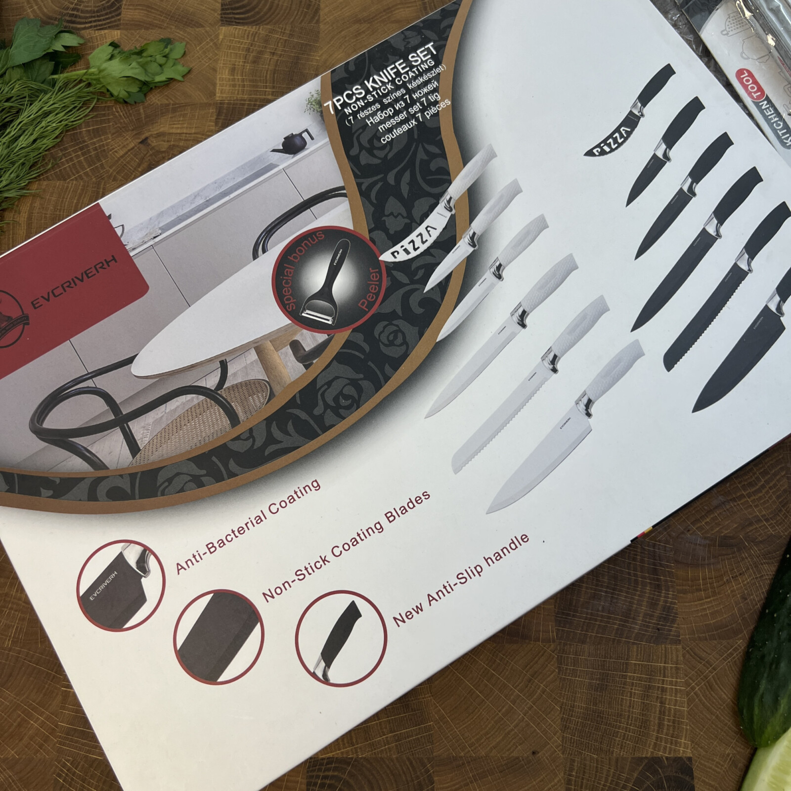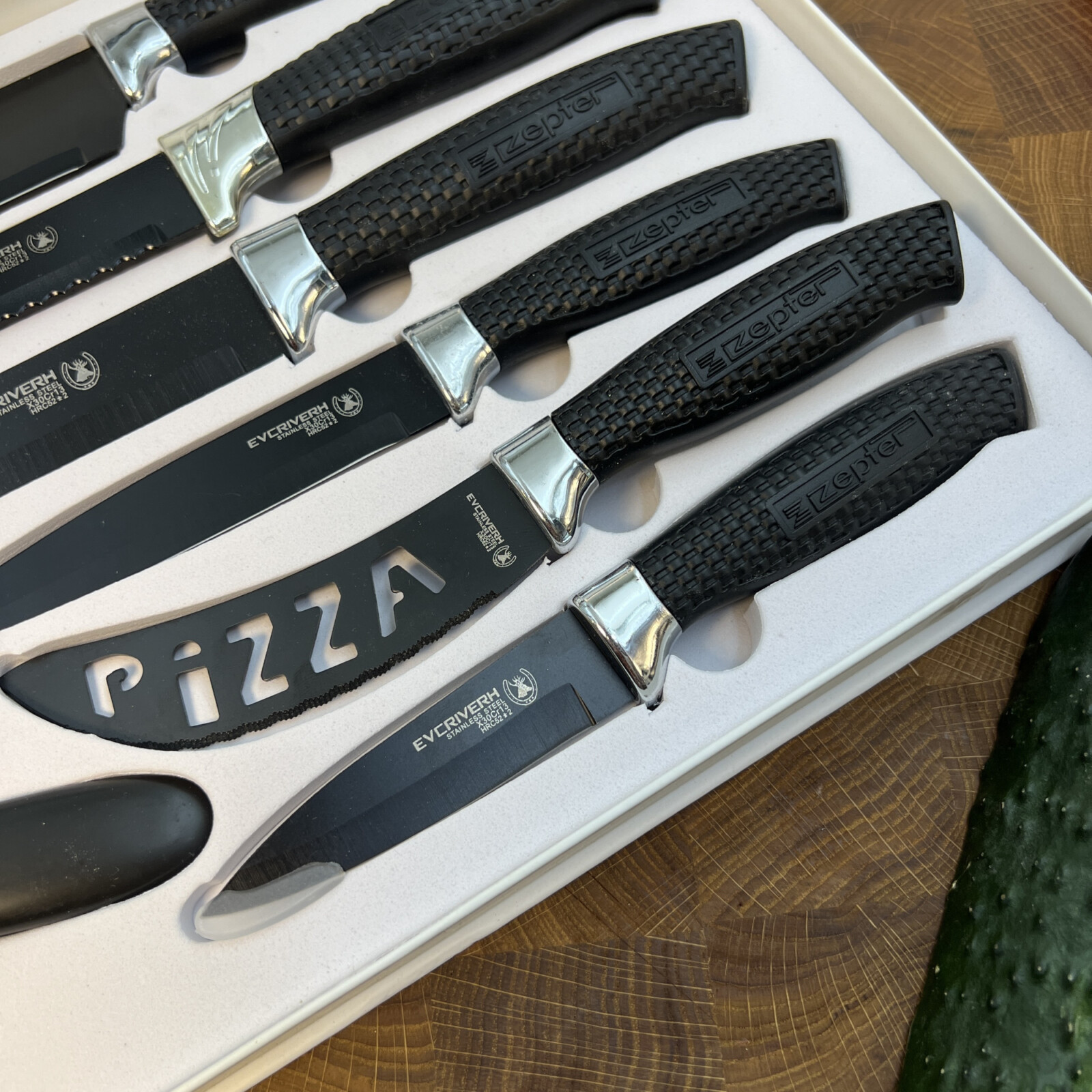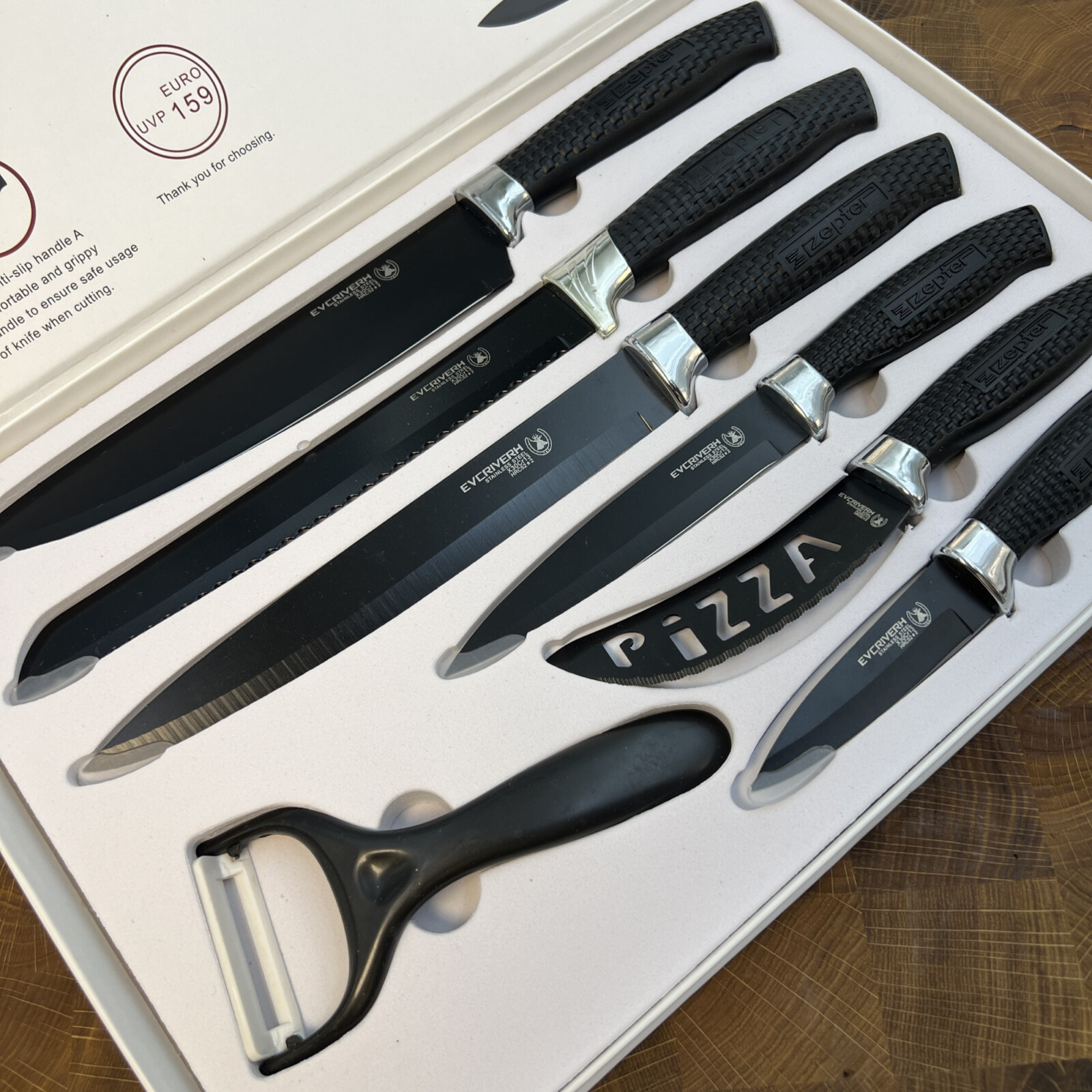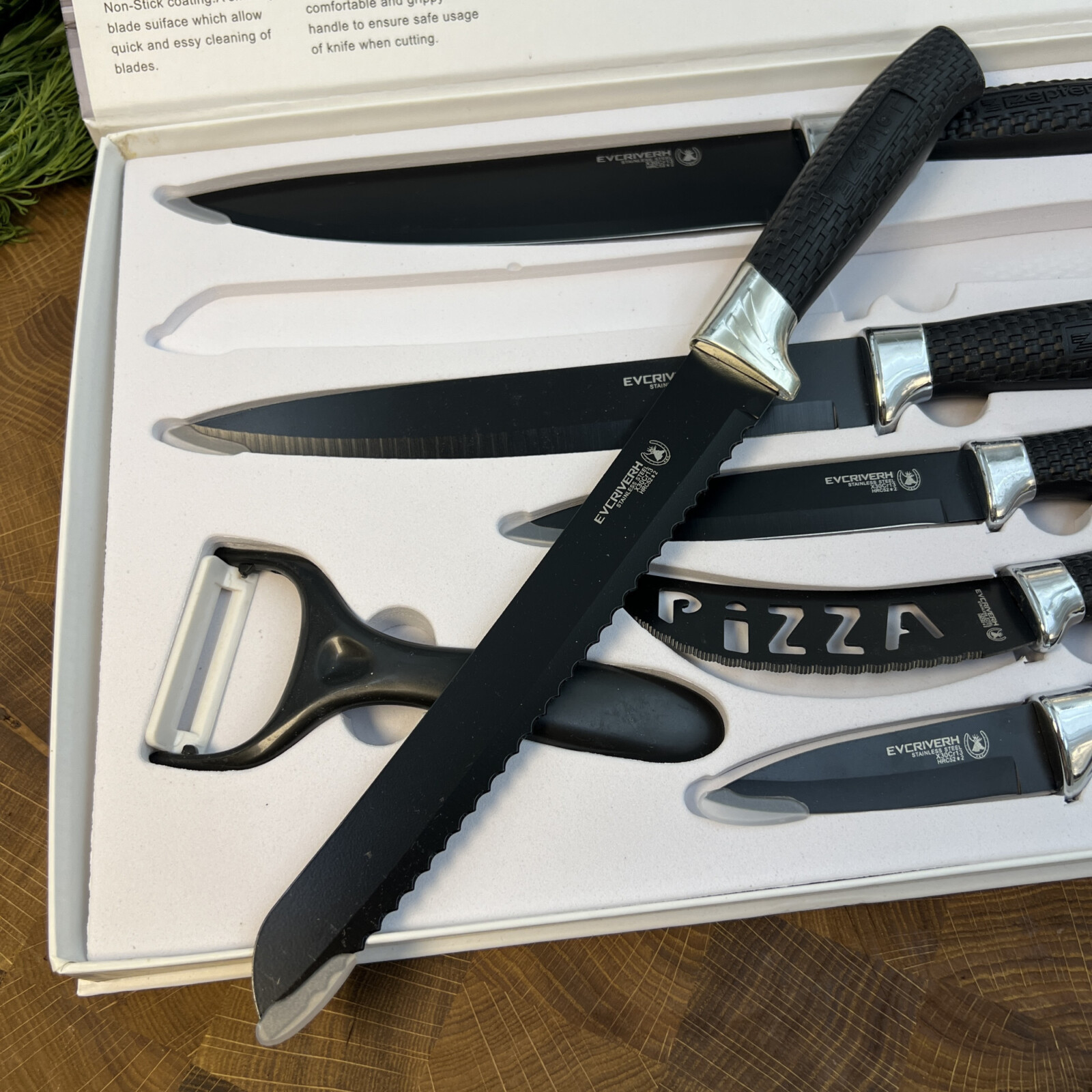 В набір входять всі базові ножі, які потрібні для повноцінного користування на кухні.