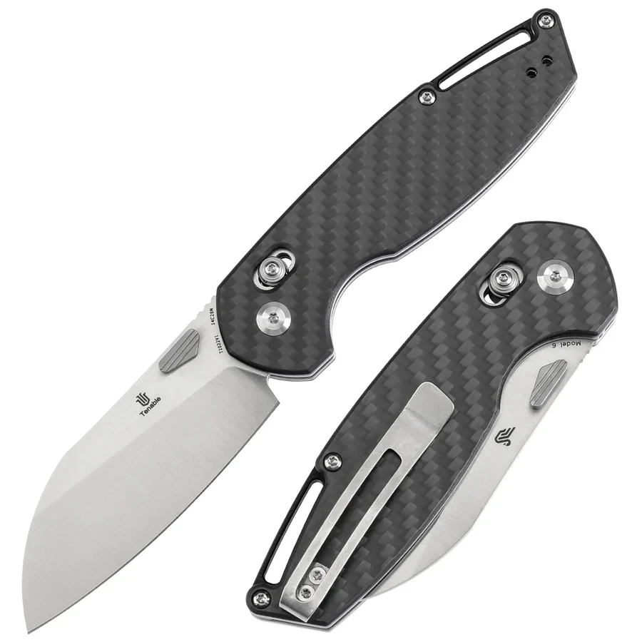 Tenable Model 6 T1022V1 — складаний ніж із клинком форми Sheepfoot у фініші Satin. Пряма геометрія ріжучої кромки забезпечує контрольований та акуратний різ при роботі з пакуванням, картоном і різними побутовими матеріалами. Руків’я з Carbon Fiber Laminate over G10 поєднує жорсткість конструкції та зменшену вагу. Оснащений замком Cross Bar Lock та комплектується запасними пружинами.
