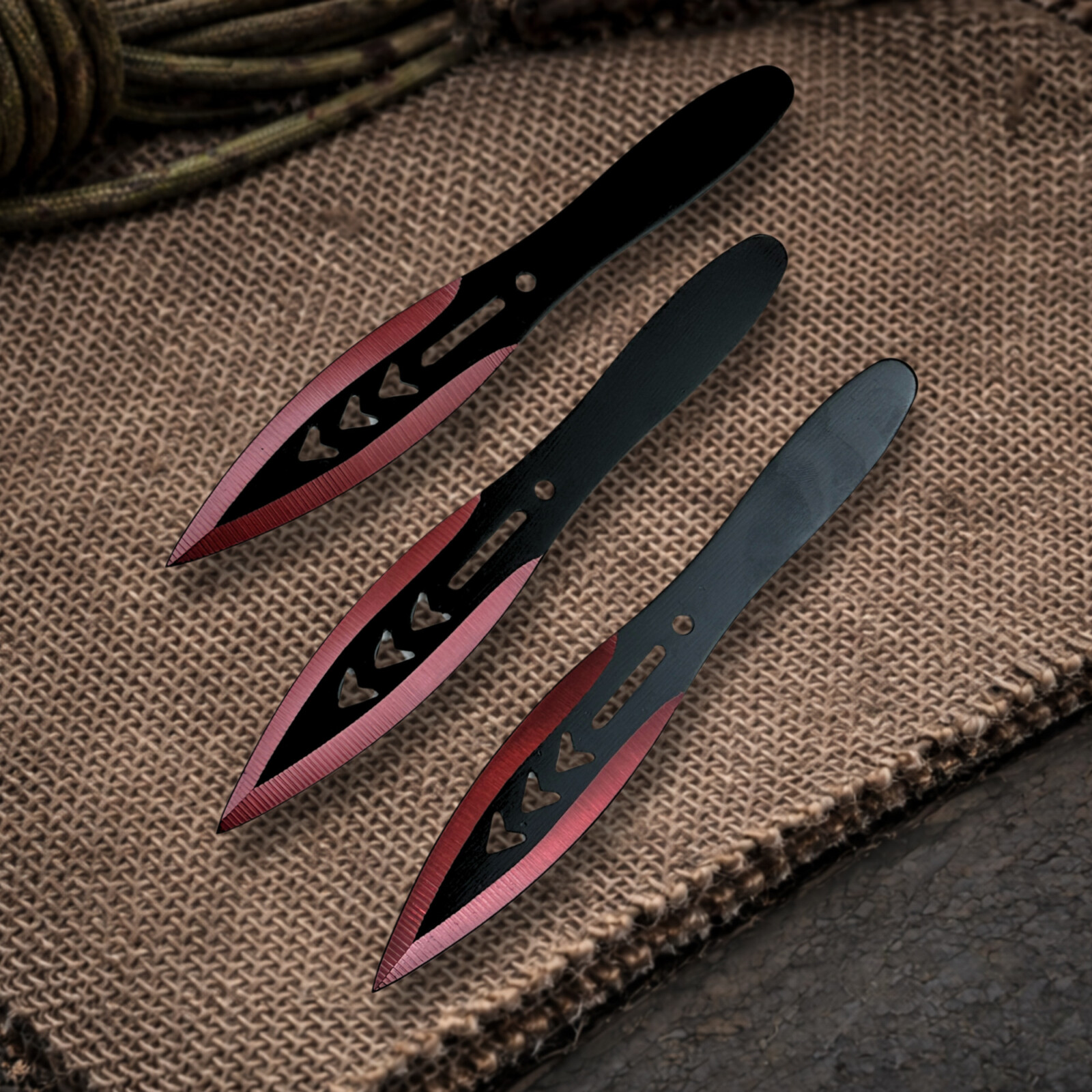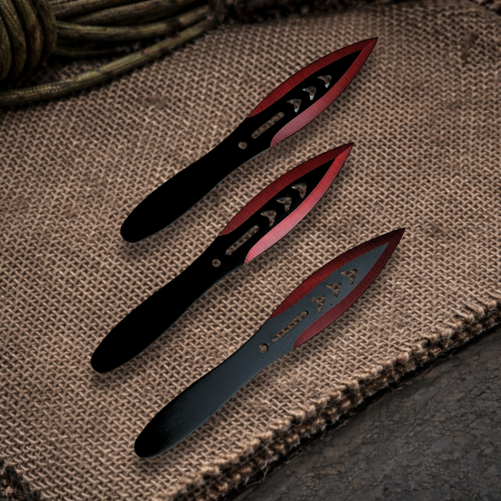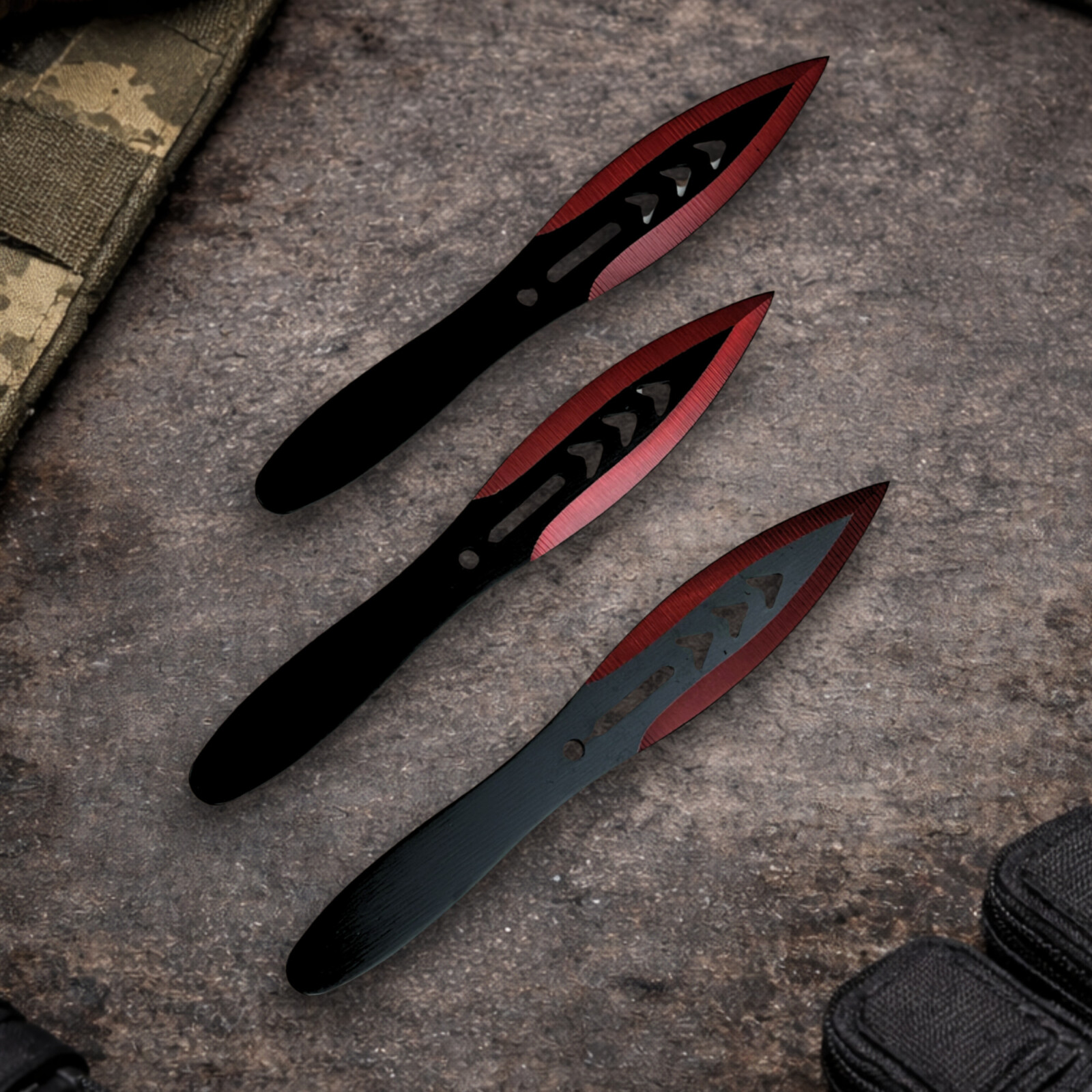 Набір компактниї метальних ножів, які чудово підійдуть для тренувань з метання по м’якому дереву.