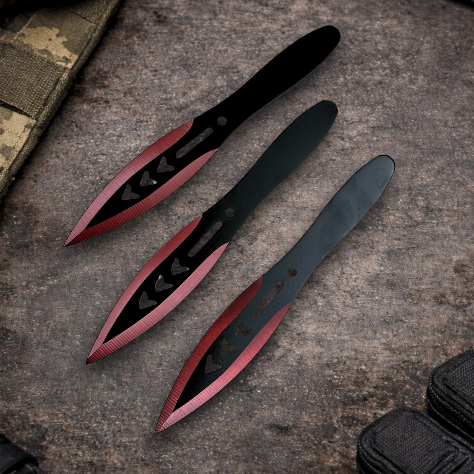 Розміри ножів однакові, для стабільного відправцьовування кидків з однієї відстані та одним зусиллям.