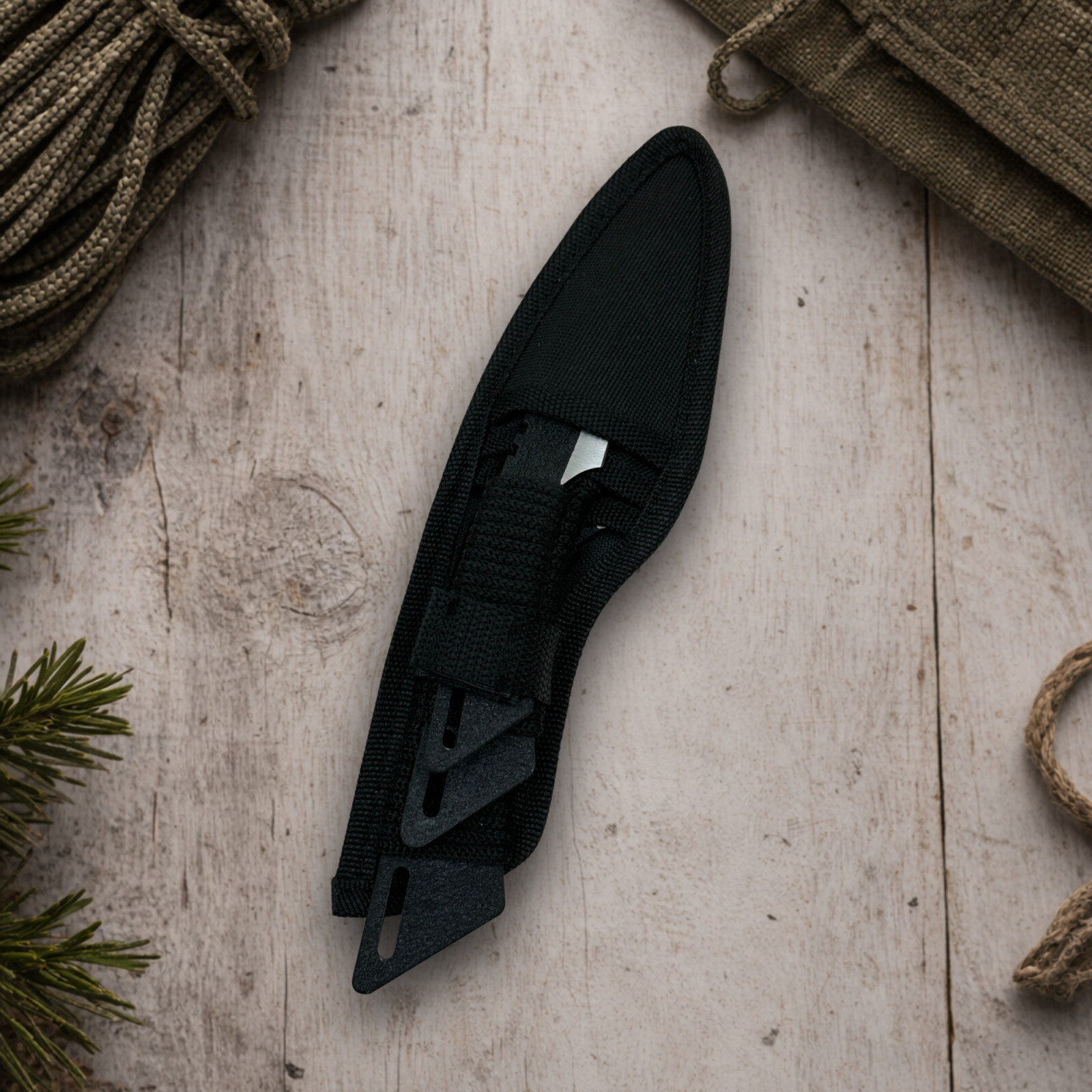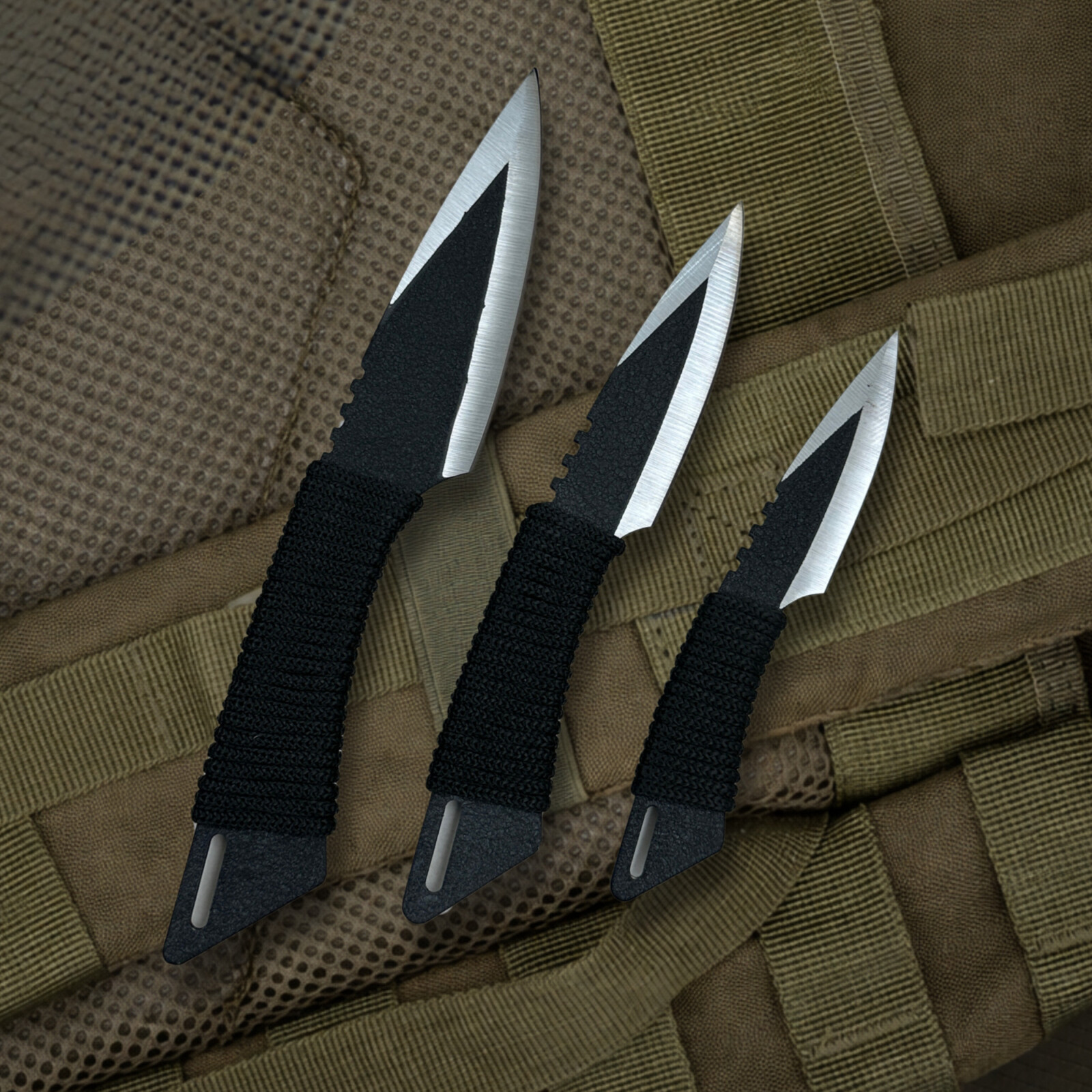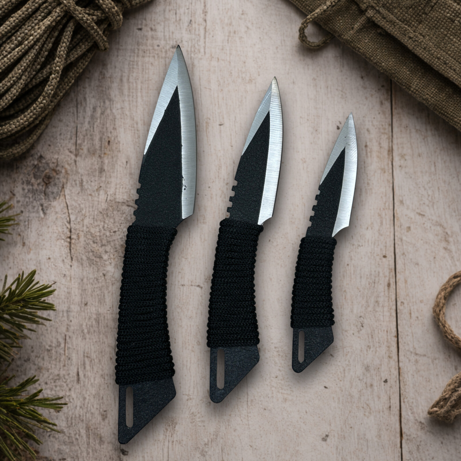 Руків’я ножа обгорнуте шнурком – для зручності, а лезо пофарбоване для додатково захисту поверхні від впливу респриятливих умов.