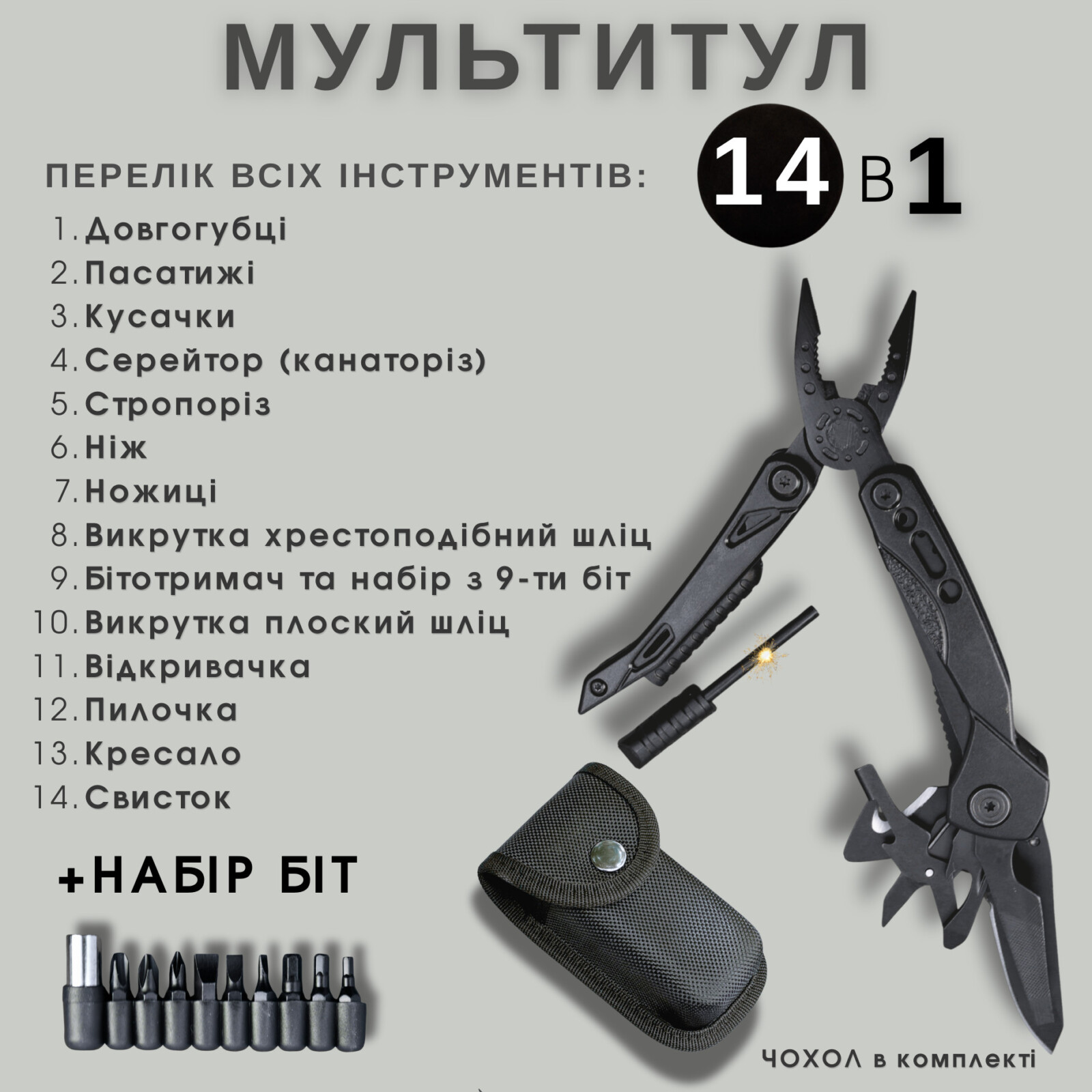 Набір корисних інструментів та аксесуарів. Готовий подарунок для чоловіка.
