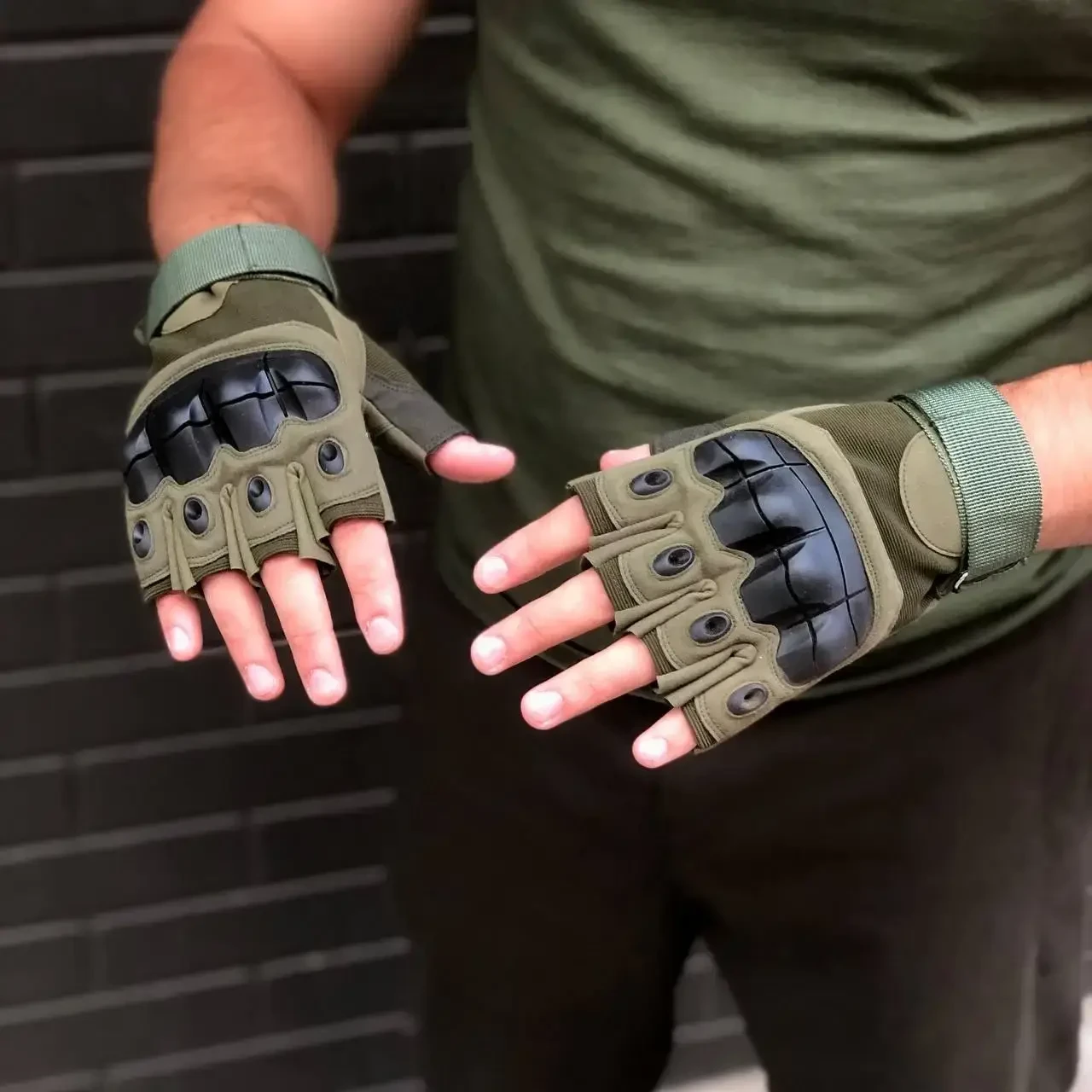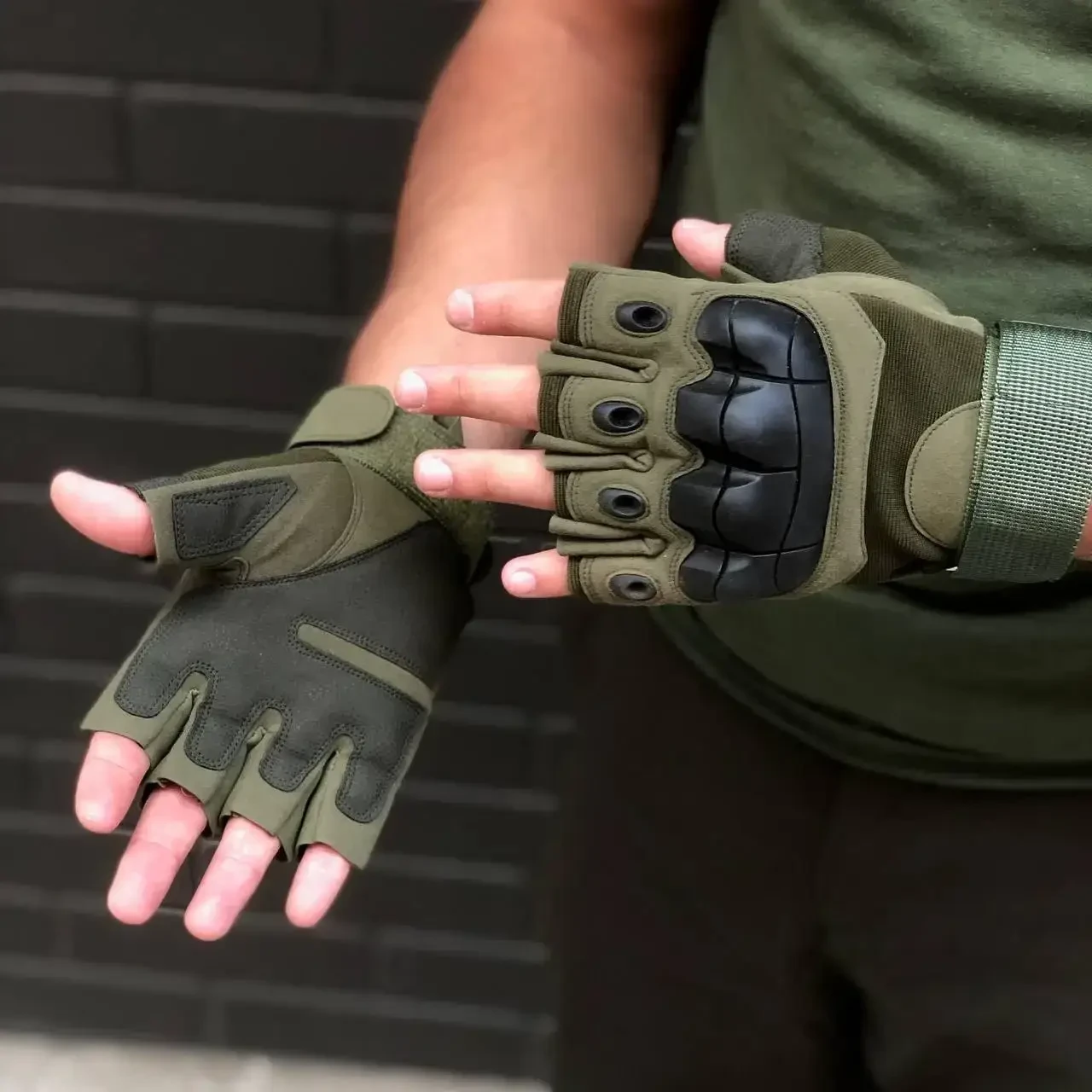 Рукавиці тактичні з захистом на п’ясток Відкриті олива.