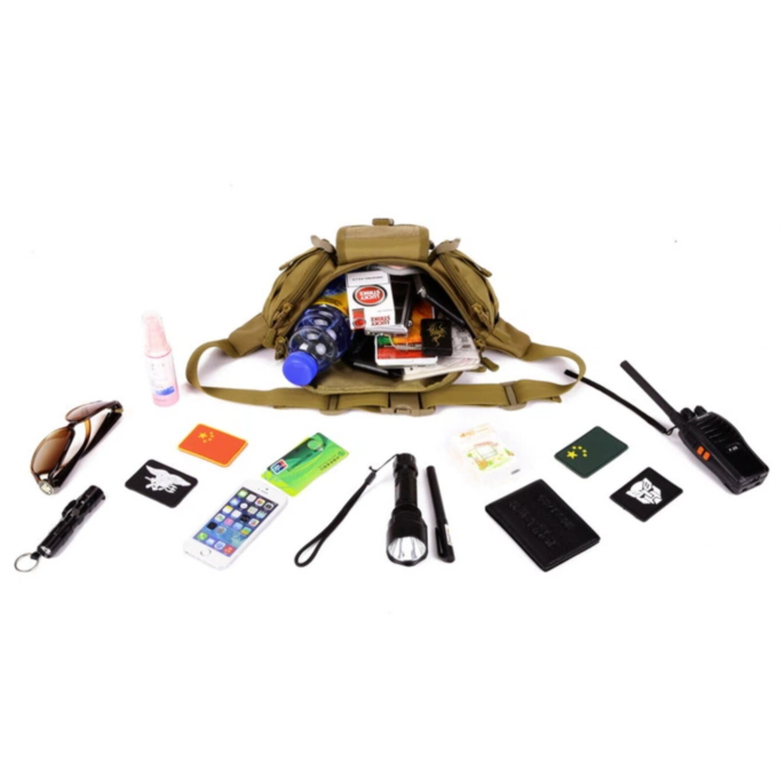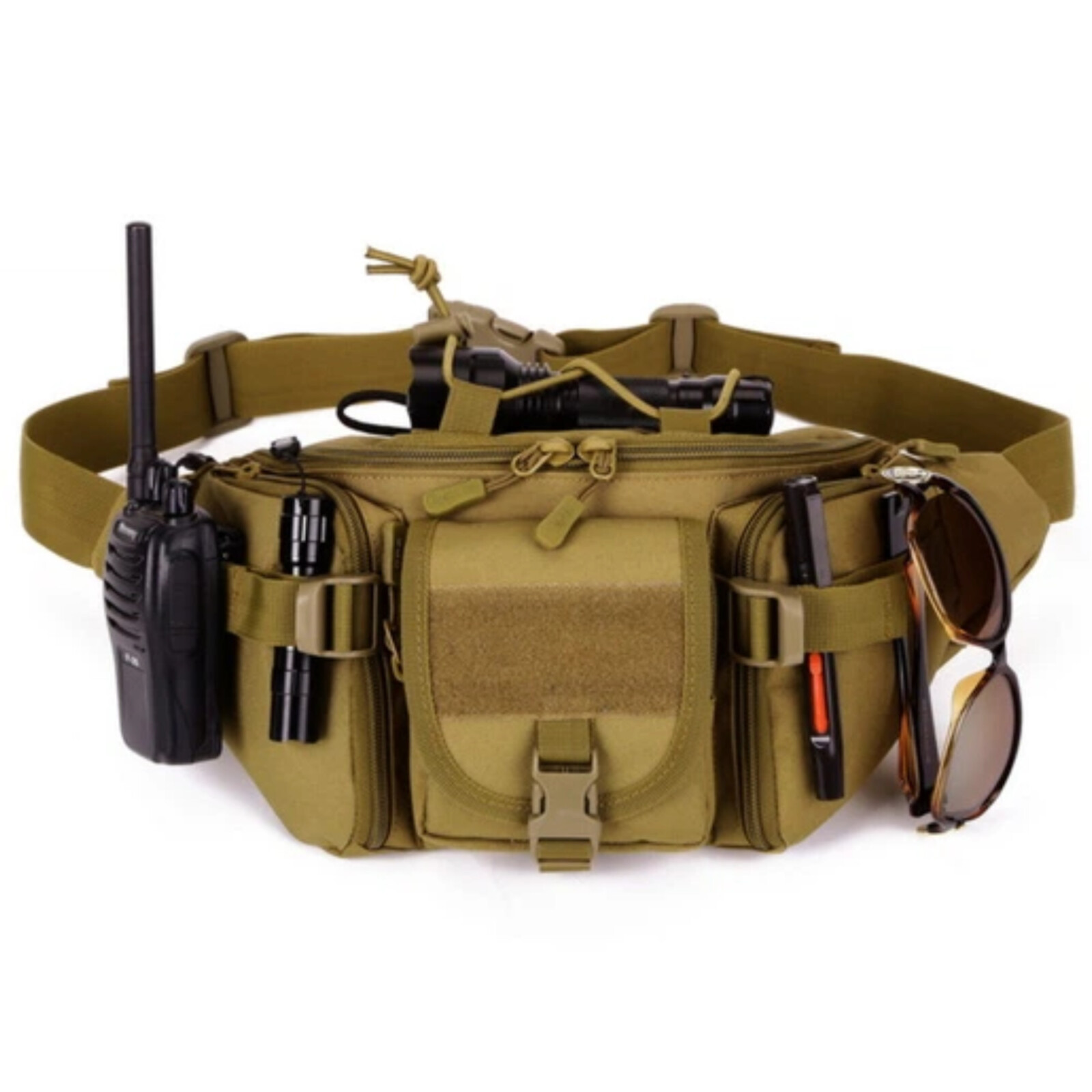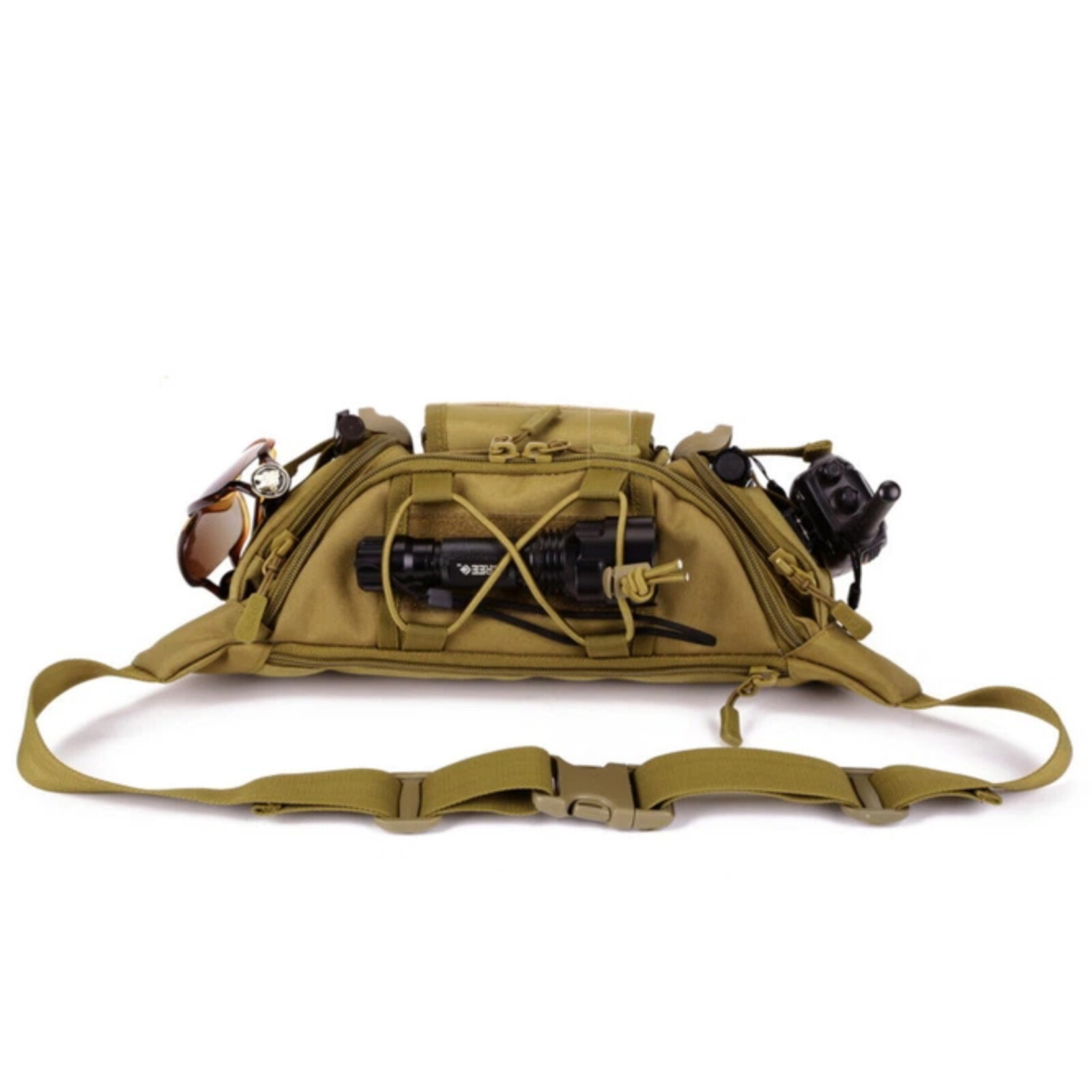 Тактична сумка-бананка. Виготовлена з матеріалу Oxford 800D. У сумки 5 кишень. На звороті одна прихована розміром на всю площу сумки. Зовнішні кишені на додаткових стяжках для надійності.