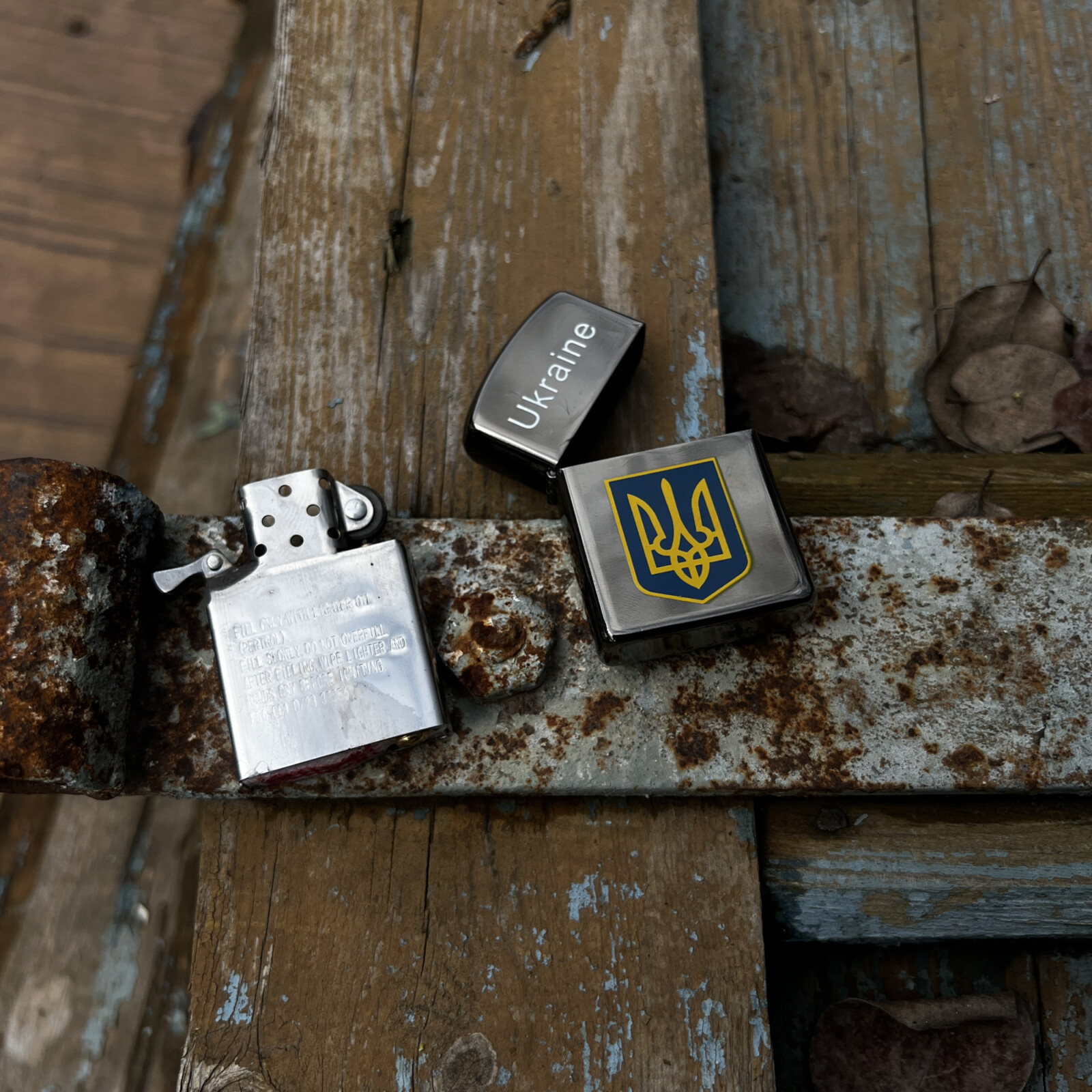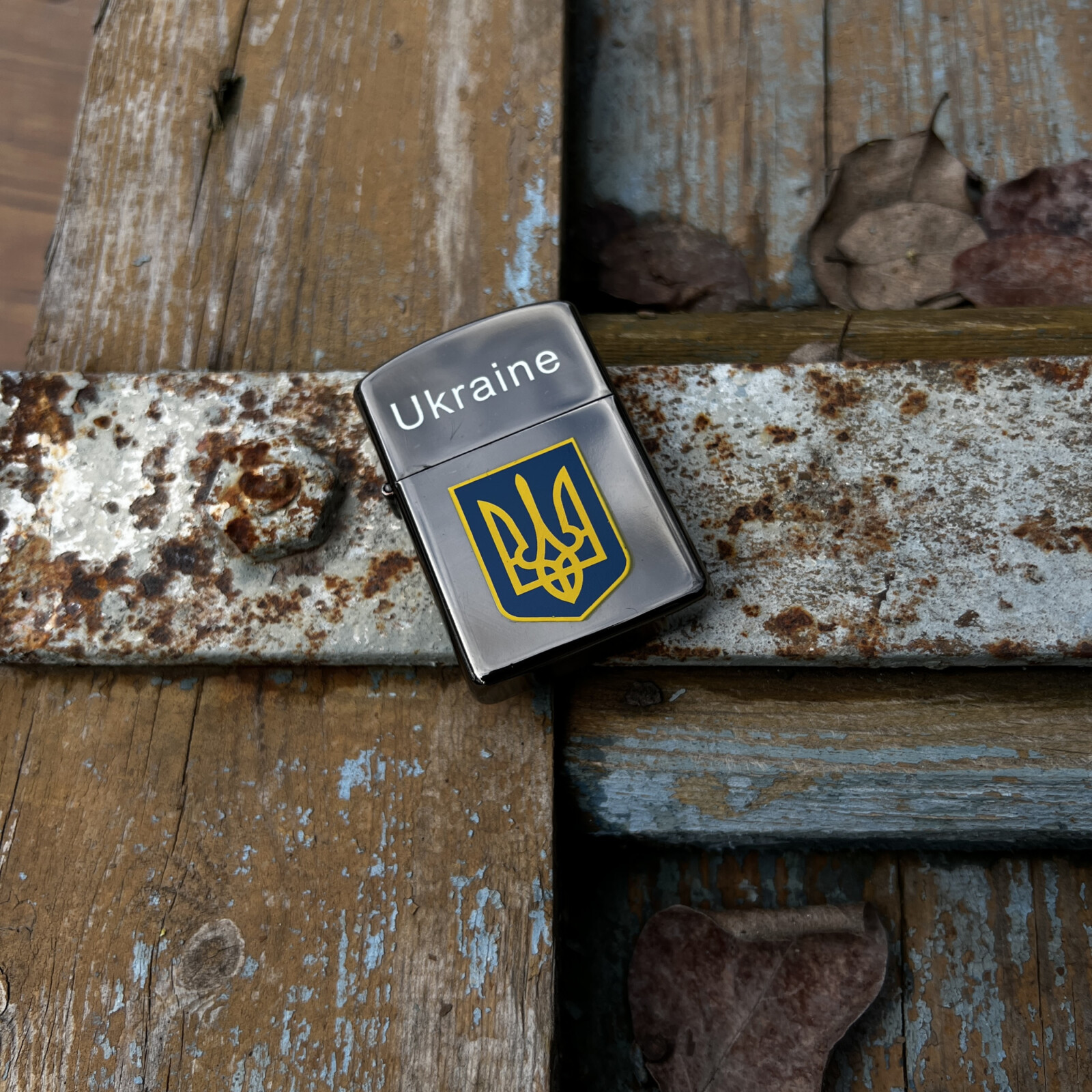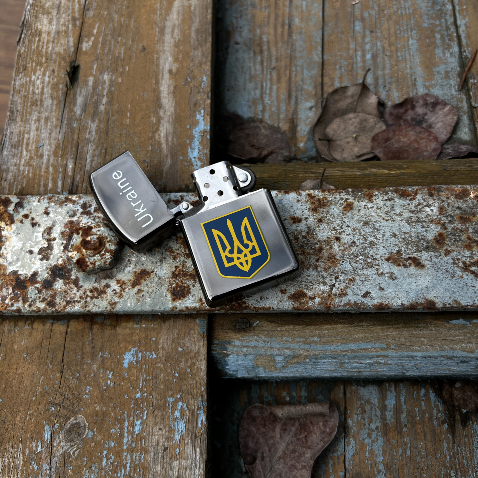 Запальничка бензинова Україна 🇺🇦 №4483 Герб Чорна Глянець