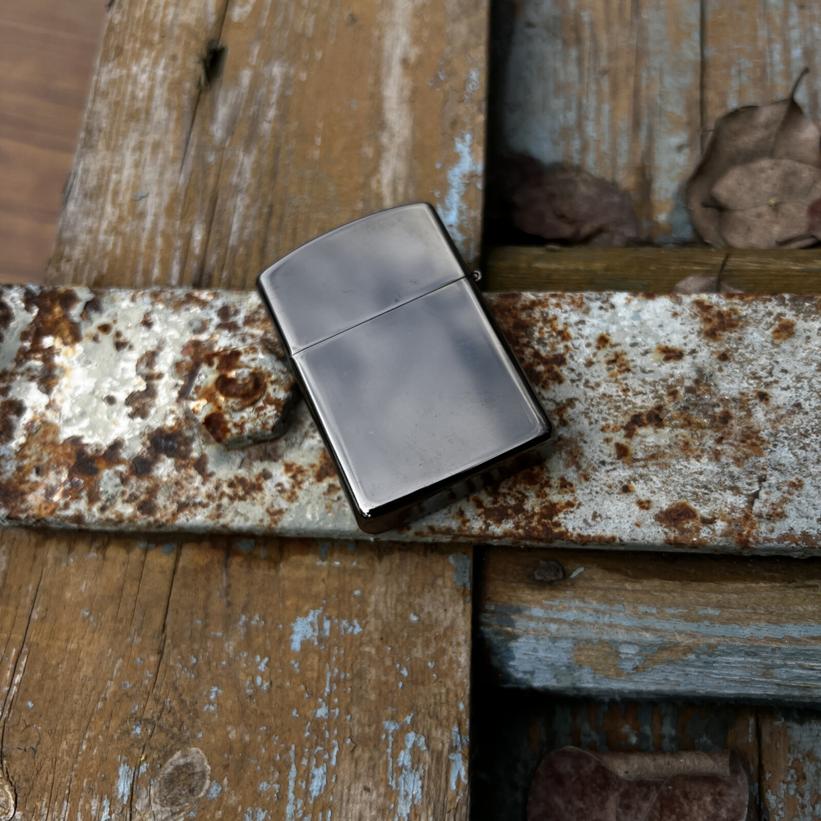 Компактна бензинова запальничка виготовлена з металу із чорним покриттям. Оснащена запобіжним механізмом для запобігання випадковому відкриванню та захистом полум’я. Має змінний гніт і камінь, розміщений на пружині. Резервуар містить матеріал, що поглинає бензин, для запобігання протіканню та розливанню. Система наповнення проста і сумісна з доступним бензином для запальничок.